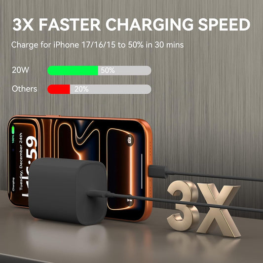 Phone 17 16 15 Charger Fast Charging, 10 FT Long USB C Charger Cord with 20W Type C Fast Phone Charging Block Forphone 17/17 Pro/17 Pro Max/Air/Phone 16 15 Pro Max Plus, Ipad, Android,Black